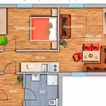 Denne ferielejlighed byder gæster på 1 soveværelser. Der er også 1 badeværelser udstyret med separat toilet og en bruser.